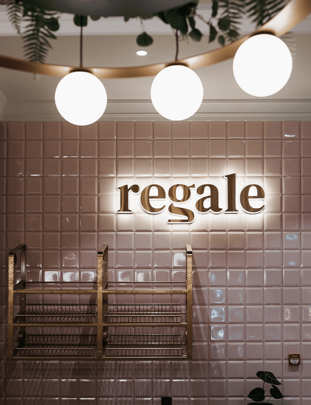 Eine konsistente Beschilderung für das Restaurant, mit einer Typografie, die dessen Prestige unterstreicht. Die dezente Beleuchtung verleiht dem Raum Eleganz und schafft eine besondere Atmosphäre.